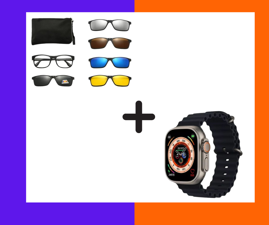 ¡Descubre el Kit Gafa de Sol Magnéticas 5 en 1 + Smartwatch Ultra Pro (con 2 correas: negro y azul)!